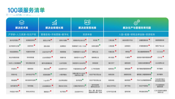 【孵化培育服务】:目前服务站已构建起涵盖“工商财税、政策申报、法律、投融资、企业管理、体系认证、人力资源、知识产权、市场营销、资质检测”等多领域的服务矩阵,整合产业、政府、高校、机构等多维度资源,形成了“超100项”服务产品,为中小微企业提供全方位的辅导与支持,助力企业高速发展。