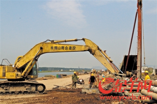 在河涌打桩,要先将钢护筒“打”到河床下50米,隔水抽掉淤泥后才能进一步作业。现场生产副经理黄旭烽已经带着工人完成了主桥前期基础打桩工作,他希望能赶在台风季节到来之前开始主桥的承台、墩身施工,“广东台风多,工期要预计长一点”。