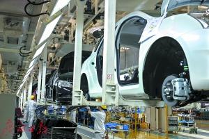 日本三大汽车巨头均在广州设立工厂。图为东风日产生产车间(资料图片)。广报记者 邵权达摄