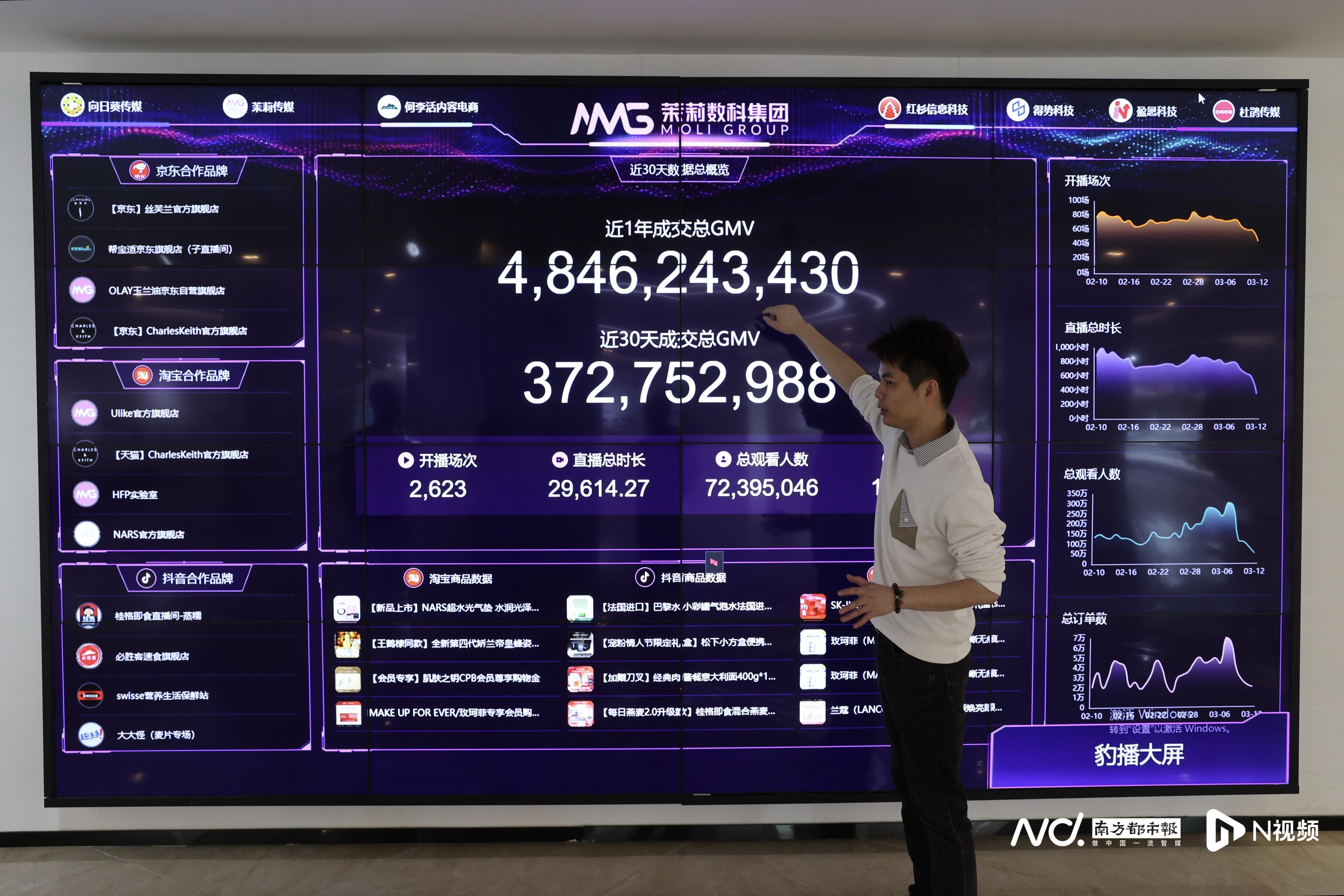 茉莉数科的一楼展厅展示了其为企业客户带来的gmv(商品交易总额)数据。