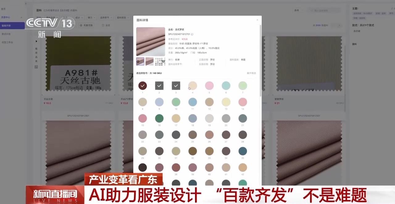 这款由当地企业研发的时尚大模型,将织物质感、花色晕染等100多项标签数据化,让大数据成为设计的灵感海洋。