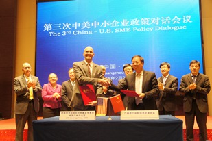 2月26日,由工业和信息化部、美国商务部共同举办,广州市政府承办的第三次中美中小企业政策对话会在穗举行,工业和信息化部冯飞副部长、美国商务部助理部长库玛共同主持会议,省经信委中小企业局姚德洪局长、市工信委赵军明主任,以及美国、广州市相关企业参加会议。中美双方围绕两国中小企业发展情况及促进政策、制造创新与中小企业、中小企业案例分享、商协会合作项目和活动四个议题进行了深入的交流探讨,就构建多层次合作关系、支持双方中小企业加强创新合作等领域达成了共识。会上,广州市工信委与美国商务部国际贸易署全球事务中国广州办公室签订合作备忘录,进一步加强广州与美国在先进制造及智能制造领域的投资和贸易合作,推动中国(广州)中小企业先进制造业中外合作区建设,努力形成互利共赢的新格局。