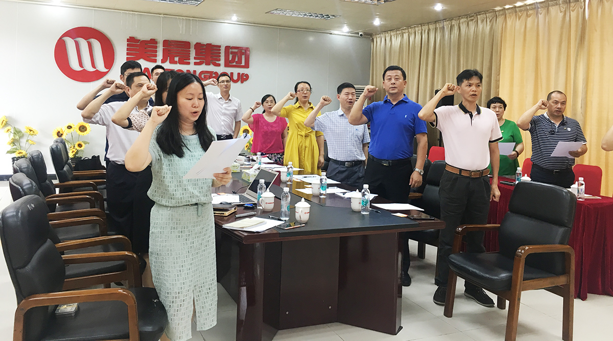 为庆祝中国共产党成立96周年,全体党员重温入党誓词。美晨集团黄本坚董事长、陆国权党委书记分别介绍了公司的发展情况和党建情况。双方还交流了学习省第十二次党代会精神的心得体会。