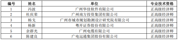 2024年度广州市经济专业正高级职称评审通过人员名单(6人,按姓氏笔画排序)