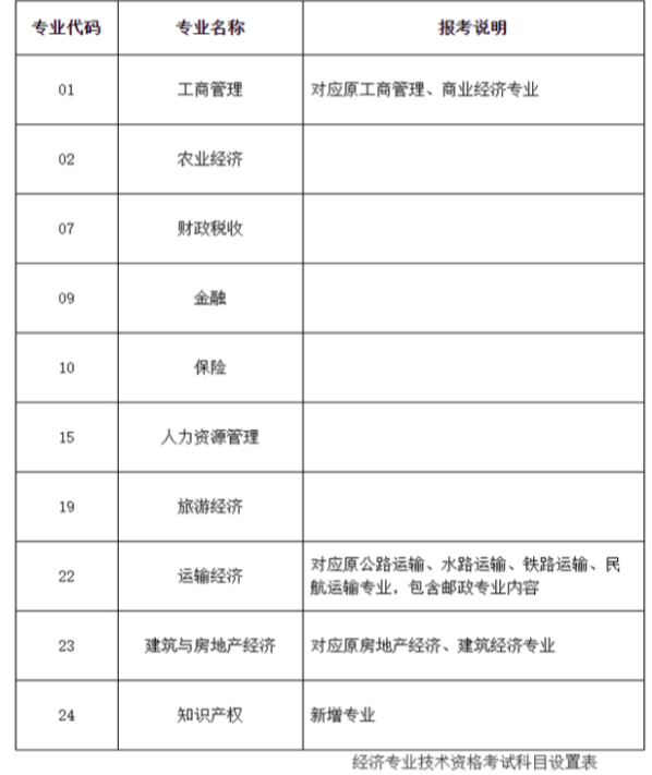 经济专业技术资格考试科目设置表
