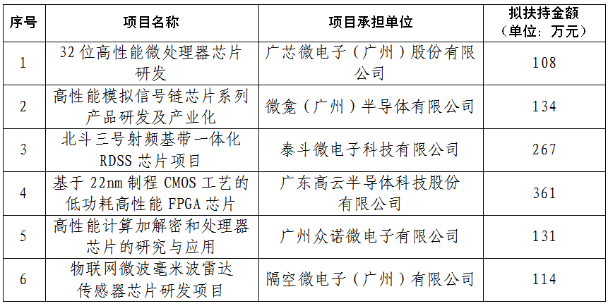 2024年广州市促进工业和信息化产业高质量发展专项资金(芯片产品量产前首轮流片补助方向)拟扶持项目