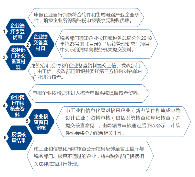 4.结果反馈。广州市工业和信息化局在收到享受优惠政策的企业名单和备案资料40 天内将经公示的核查结果报送省工业和信息化厅。省工业和信息化厅在收到享受优惠政策的企业名单和备案资料两个月内,将核查结果反馈给省级税务部门。经核查,对不符合条件或存在违反国家法律法规、标准规范情况,或提供虚假核查备案资料的企业,将按有关规定进行处理。