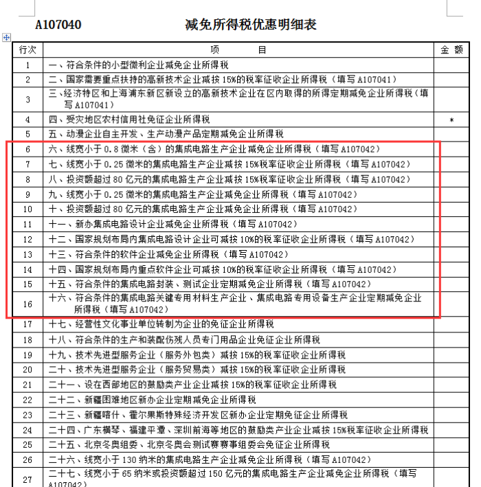 (备注:重软企业由发改部门核查,具体条件为除符合软件企业的条件外,还应至少符合下列条件中的一项:1.汇算清缴年度软件产品开发销售(营业)收入不低于2亿元,应纳税所得额不低于1000万元,研究开发人员占企业月平均职工总数的比例不低于25%;2.在国家规定的重点软件领域内,汇算清缴年度软件产品开发销售(营业)收入不低于5000万元,应纳税所得额不低于250万元,研究开发人员占企业月平均职工总数的比例不低于25%,企业在中国境内发生的研究开发费用金额占研究开发费用总额的比例不低于70%;3.汇算清缴年度软件出口收入总额不低于800万美元,软件出口收入总额占本企业年度收入总额比例不低于50%,研究开发人员占企业月平均职工总数的比例不低于25%)