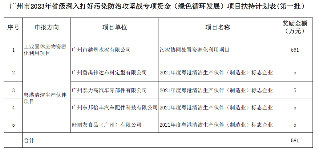 广州市工业和信息化局关于2023年省级深入打好污染防治攻坚战专项资金(绿色循环发展)项目扶持计划(第一批)的公示-ag九游会登录j9入口